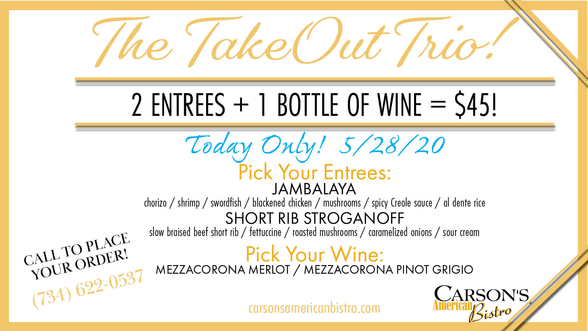 The Chop House Ann Arbor We May Not Be Open Carson S American Bistro Is Ready To Feed You Car Side And Delivery Facebook